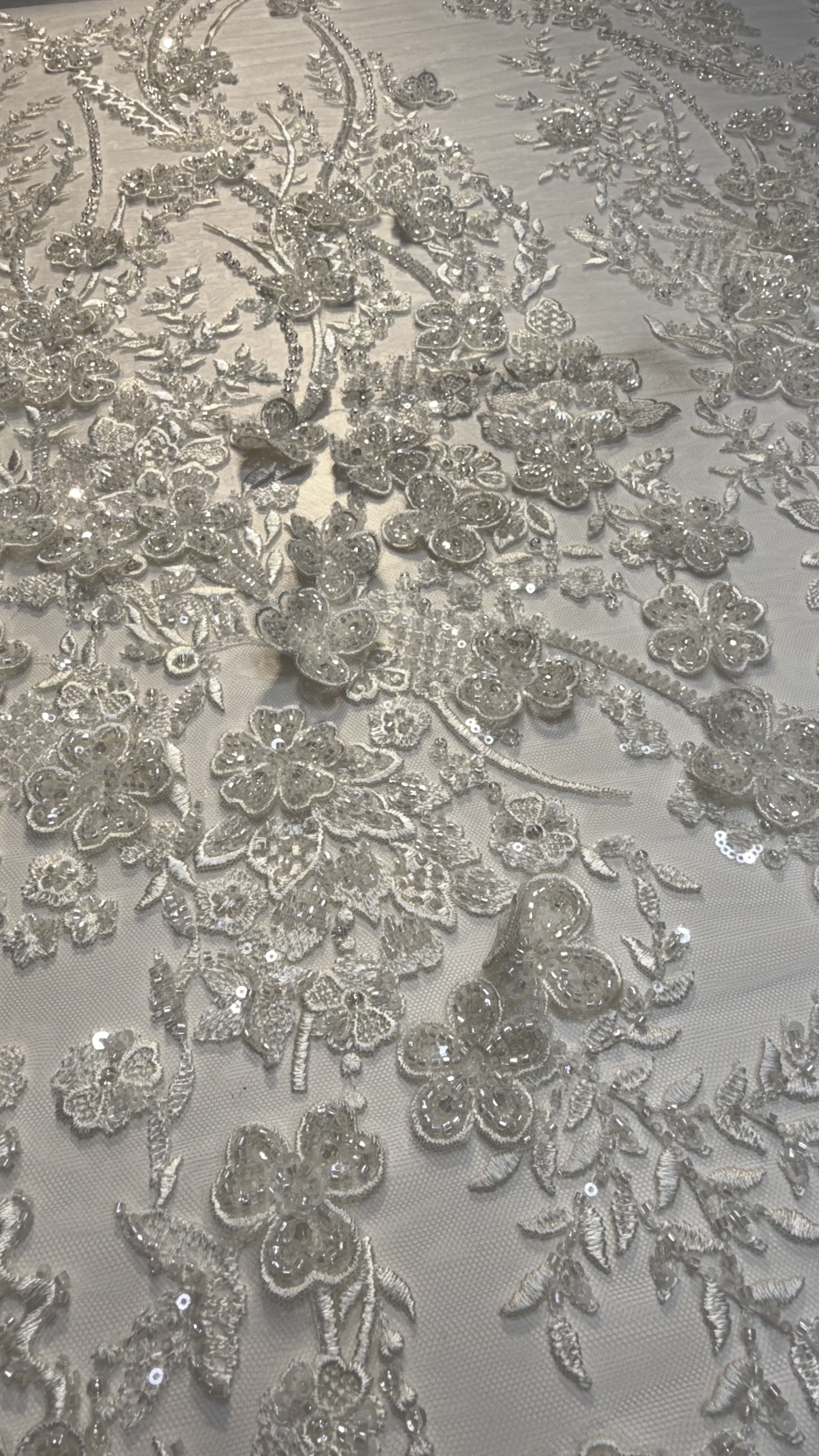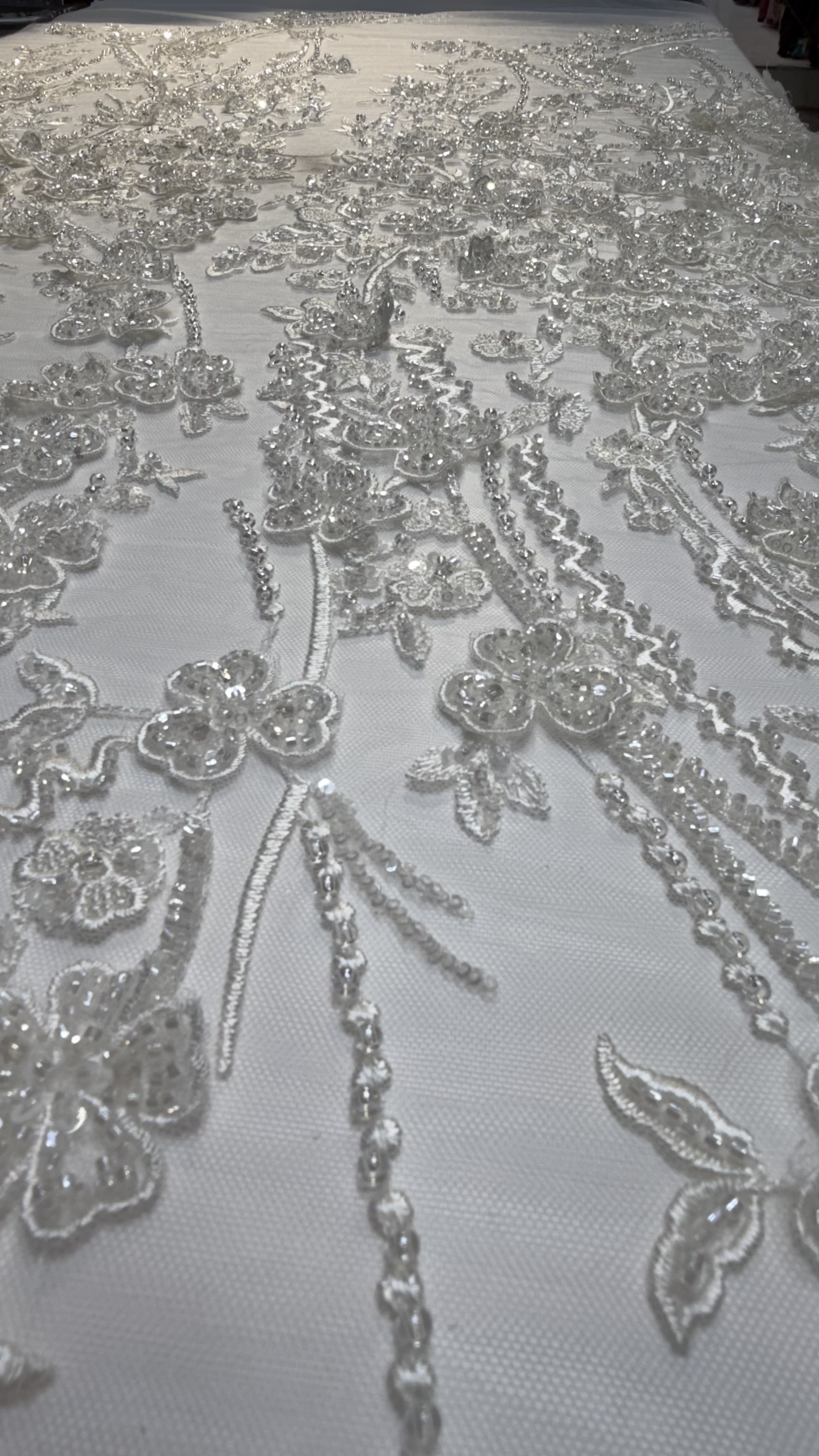 جنس: زمینه تور کار شده با شکوفه برجسته ملیله منجوق و کریستال