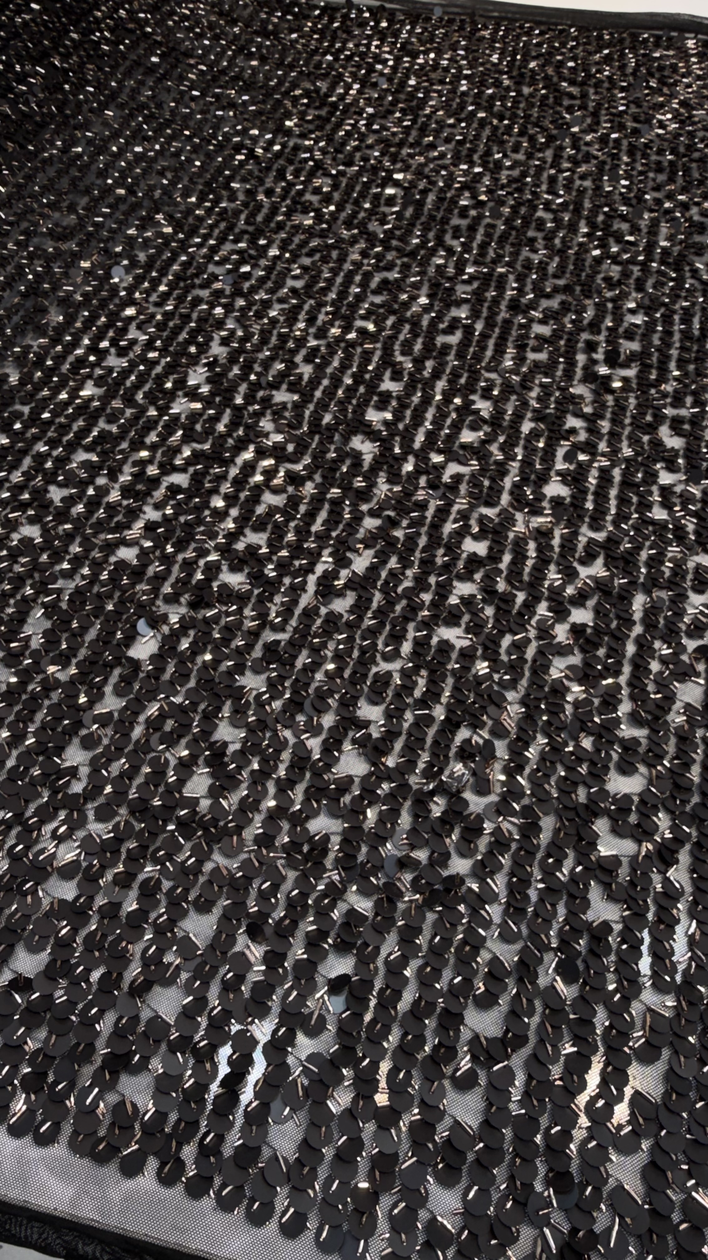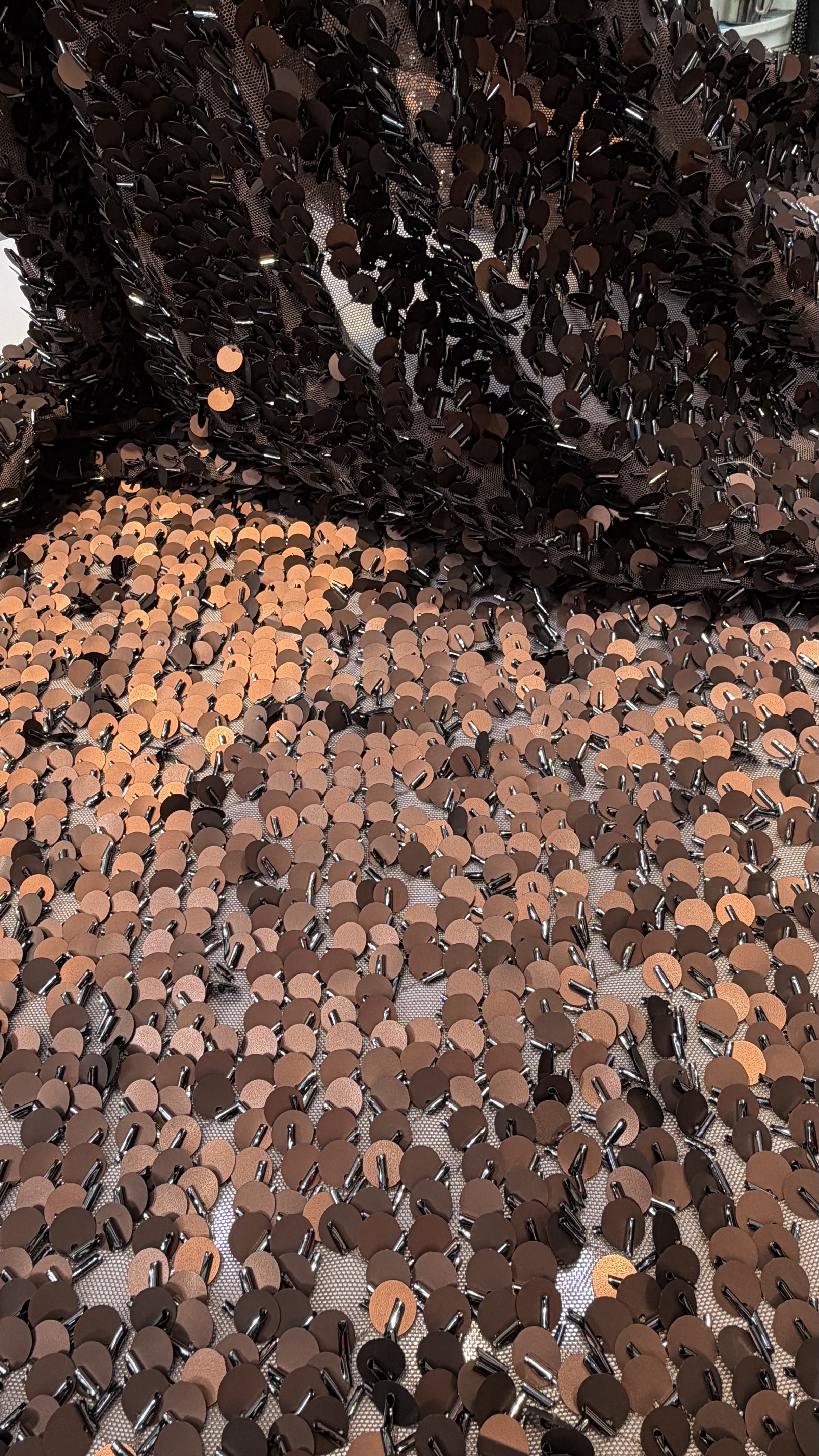 جزئیات: پولک و طرح ملیله دوخت شده روی تور کشی