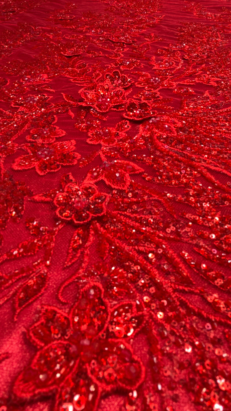 جنسزمینه تور کار شده با ملیله منجوق کریستال شیشه ای و شکوفه برجسته دوخت شده