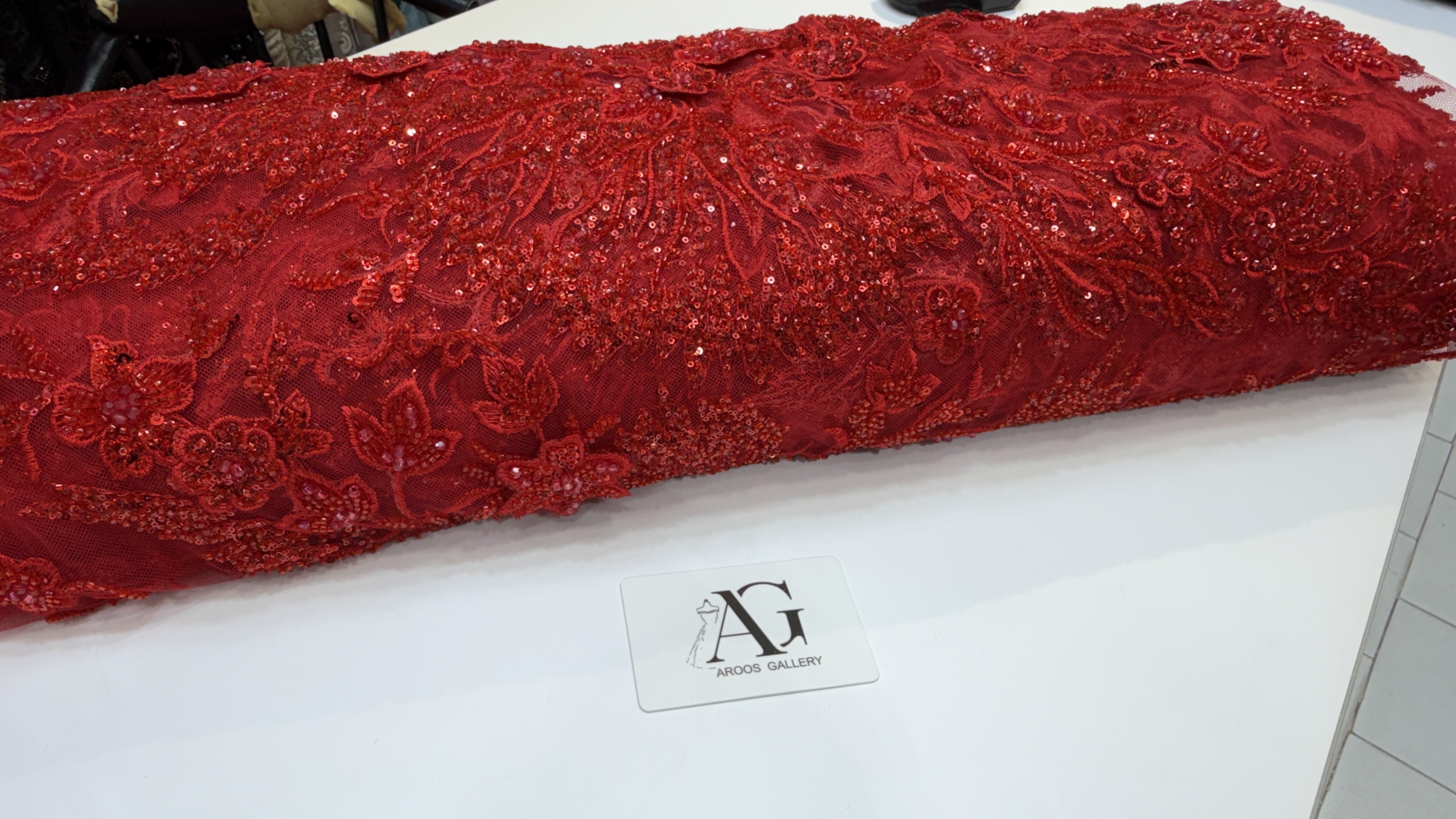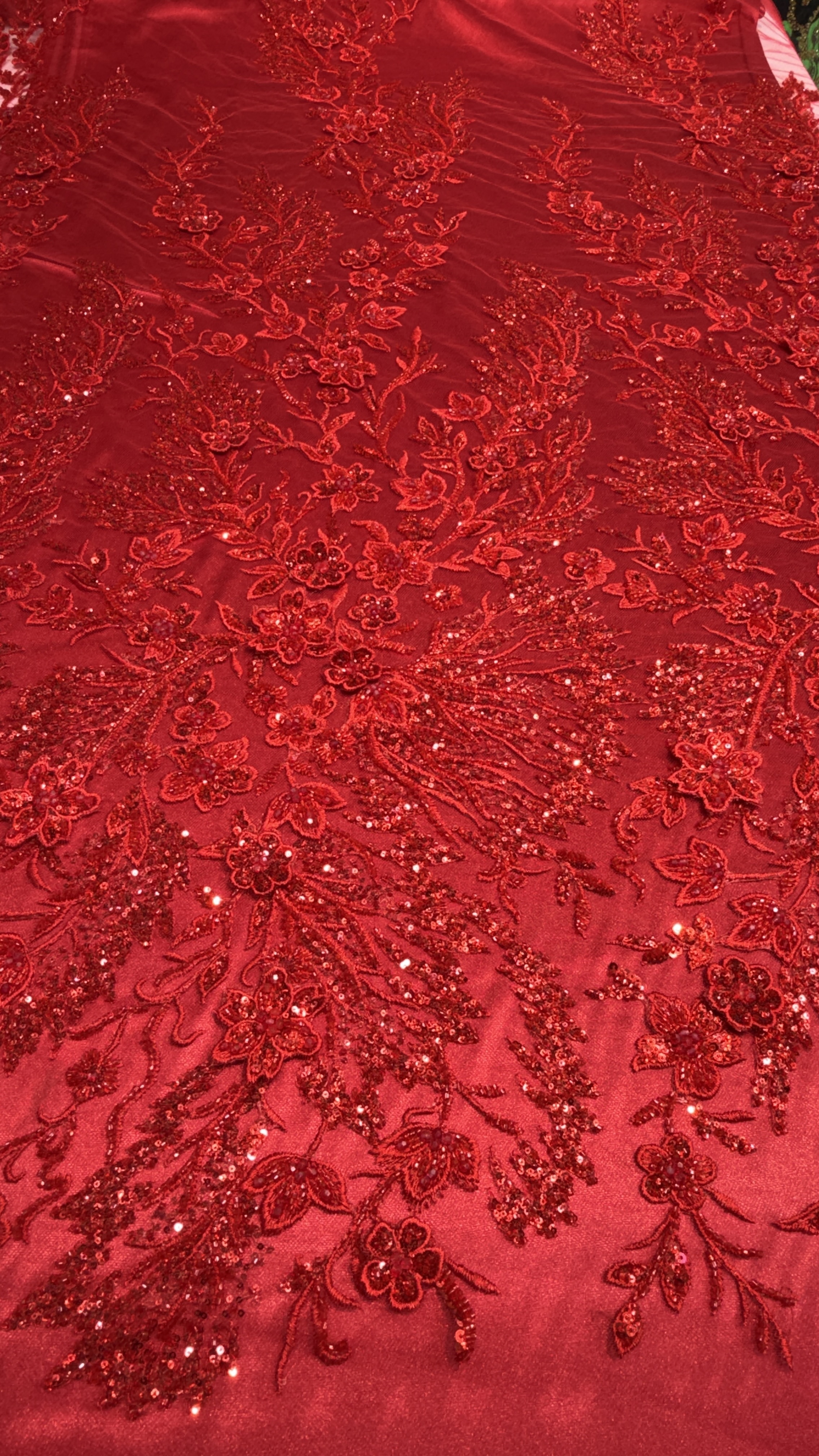 جنسزمینه تور کار شده با ملیله منجوق کریستال شیشه ای و شکوفه برجسته دوخت شده