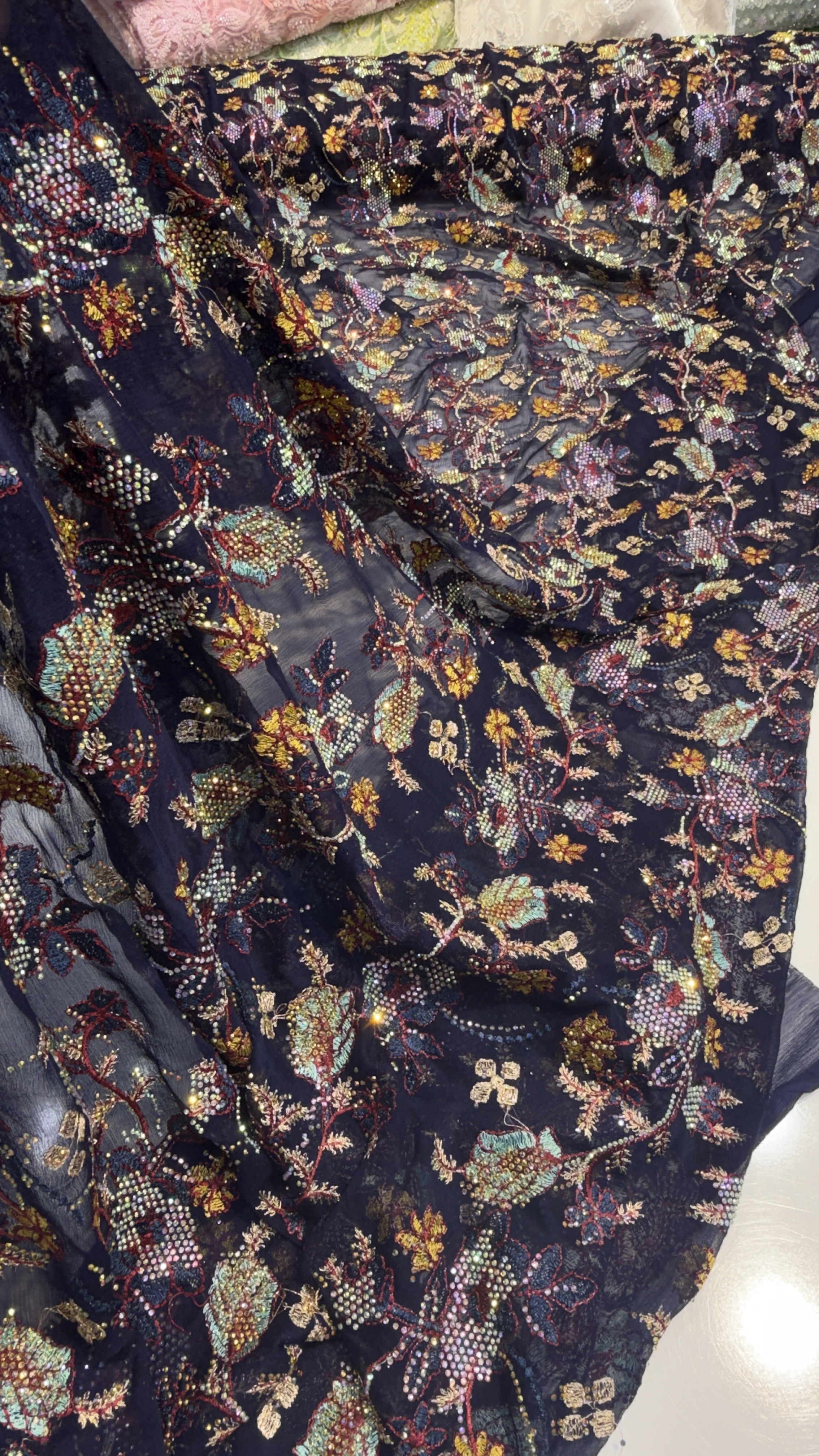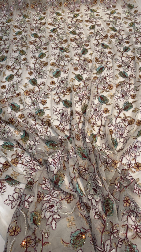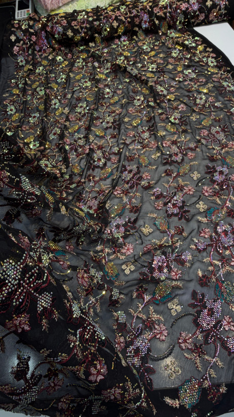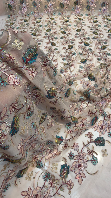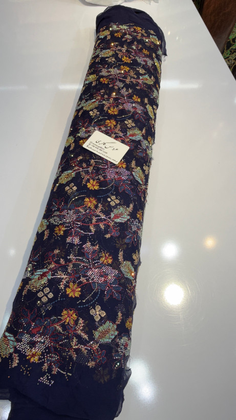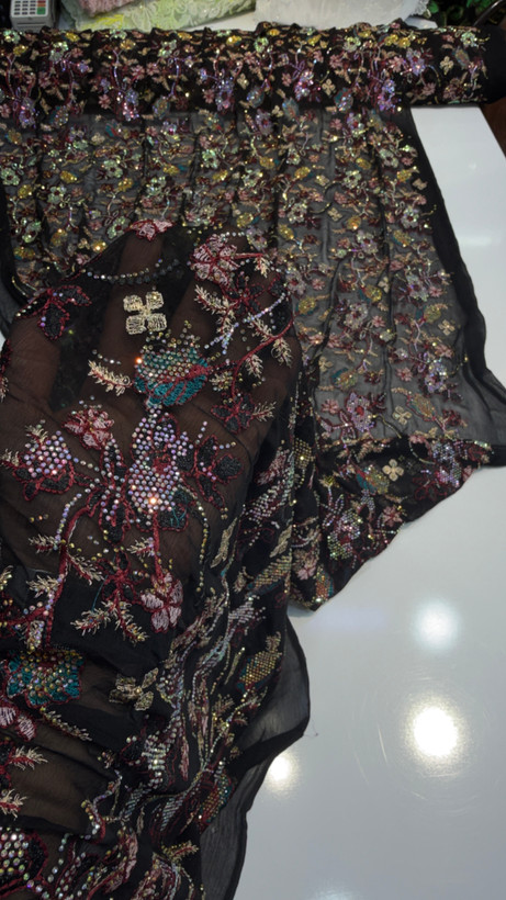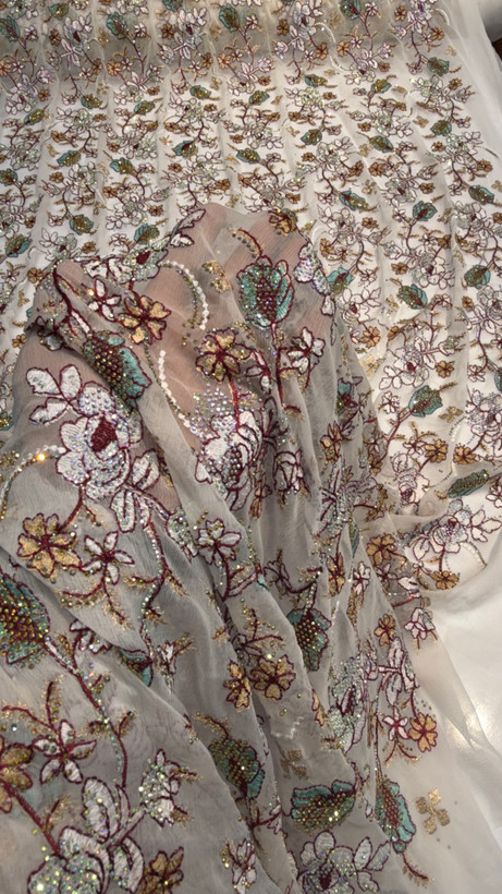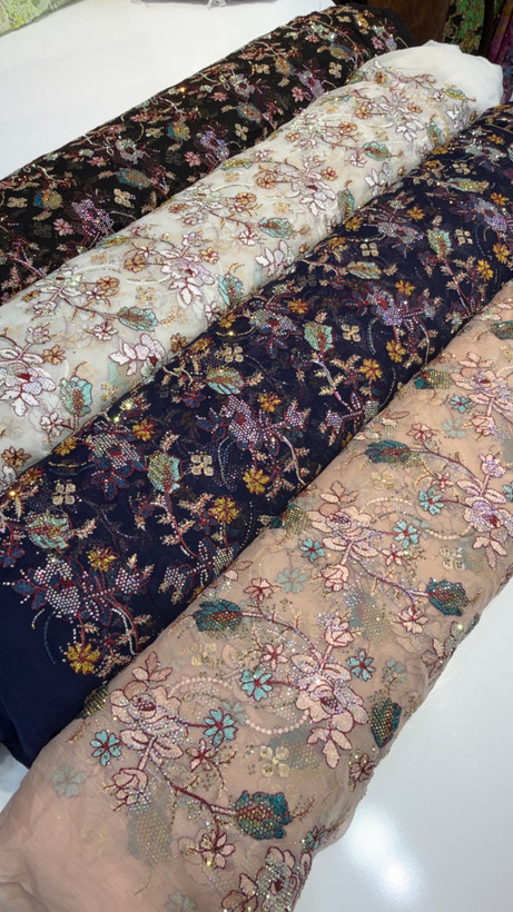 جزئیاتزمینه حریر شیفون سوزن دوزی شده کار شده با سنگ 7 رنگ اصلی