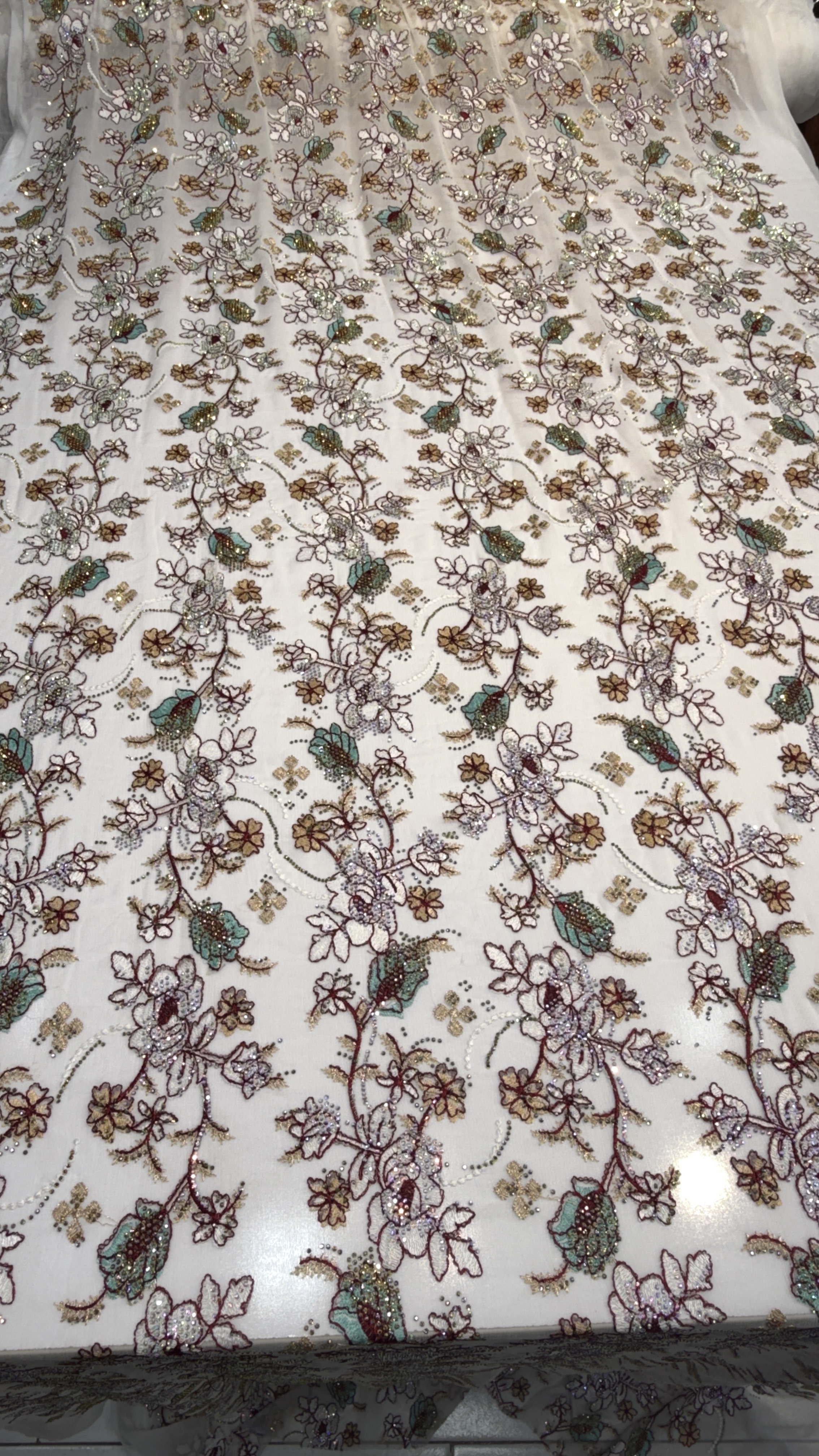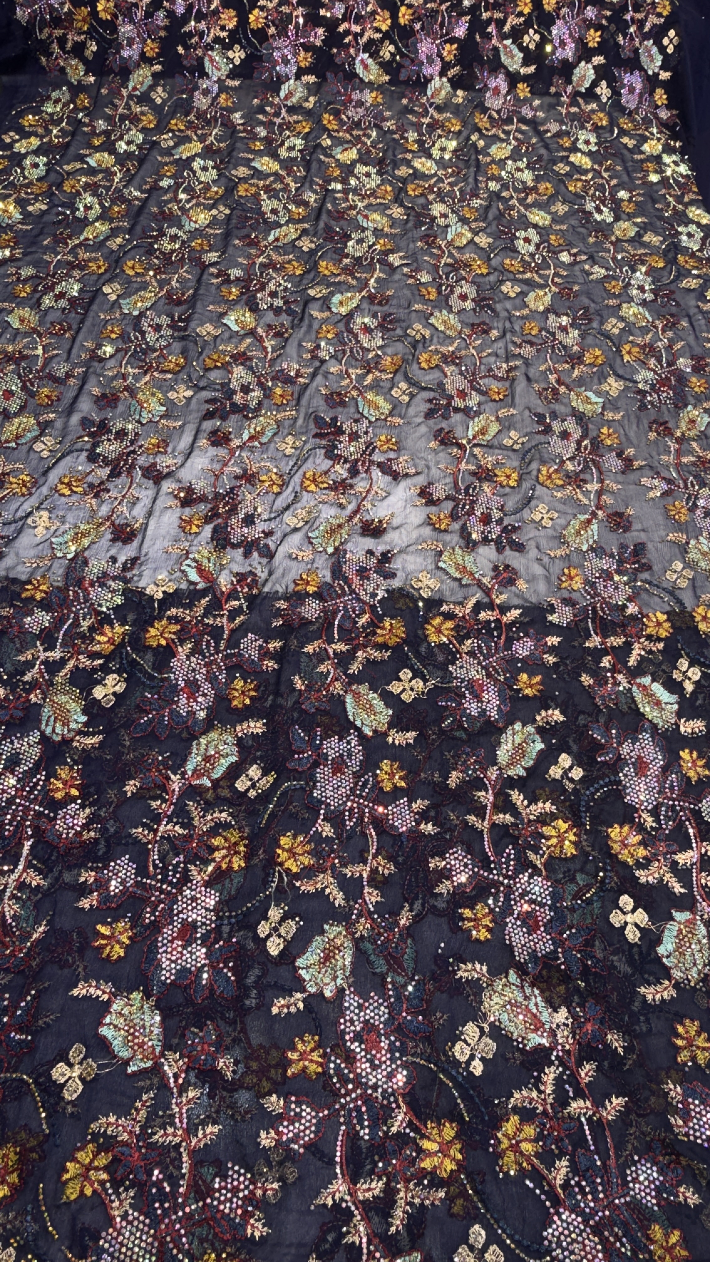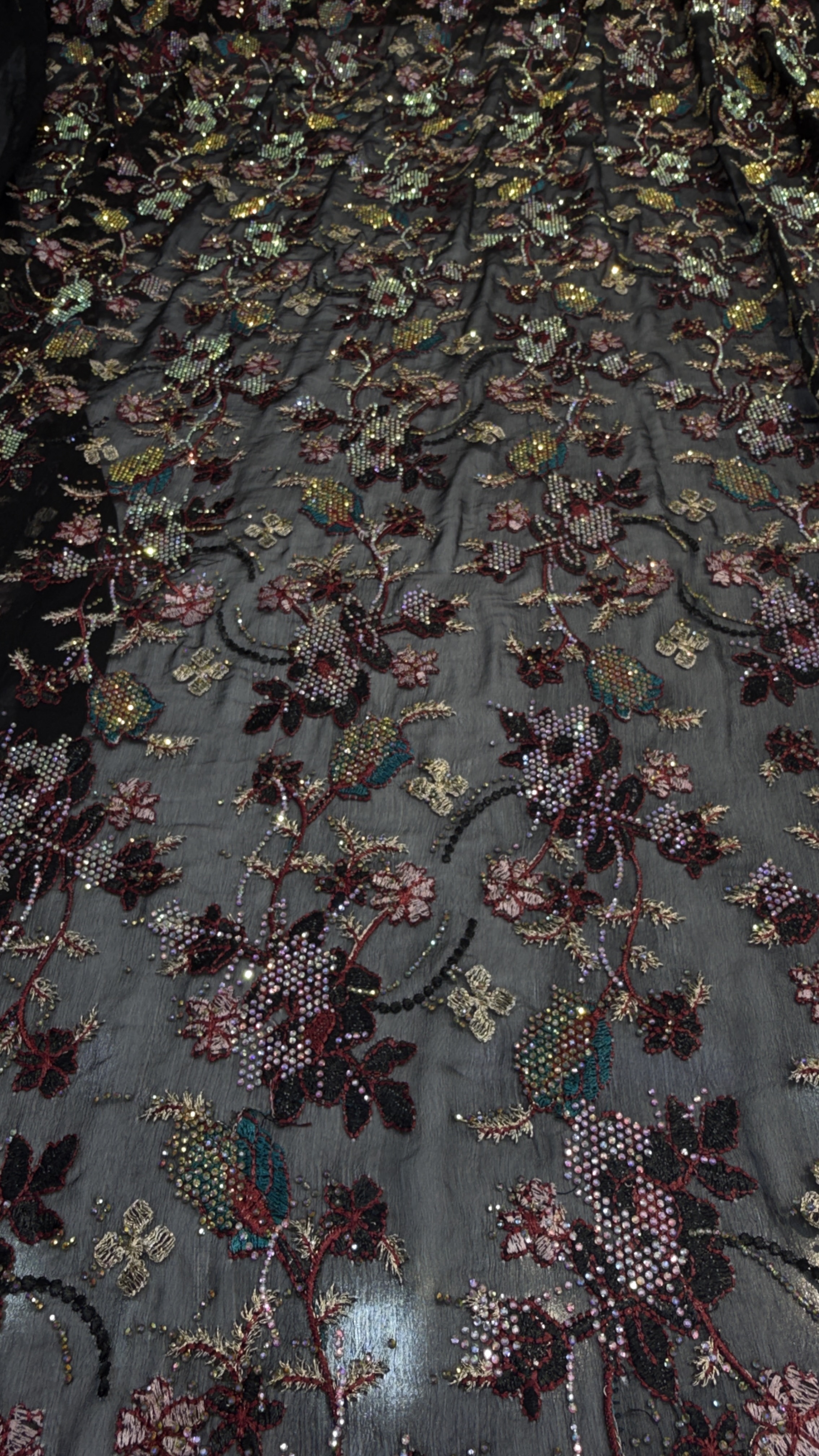 جزئیاتزمینه حریر شیفون سوزن دوزی شده کار شده با سنگ 7 رنگ اصلی